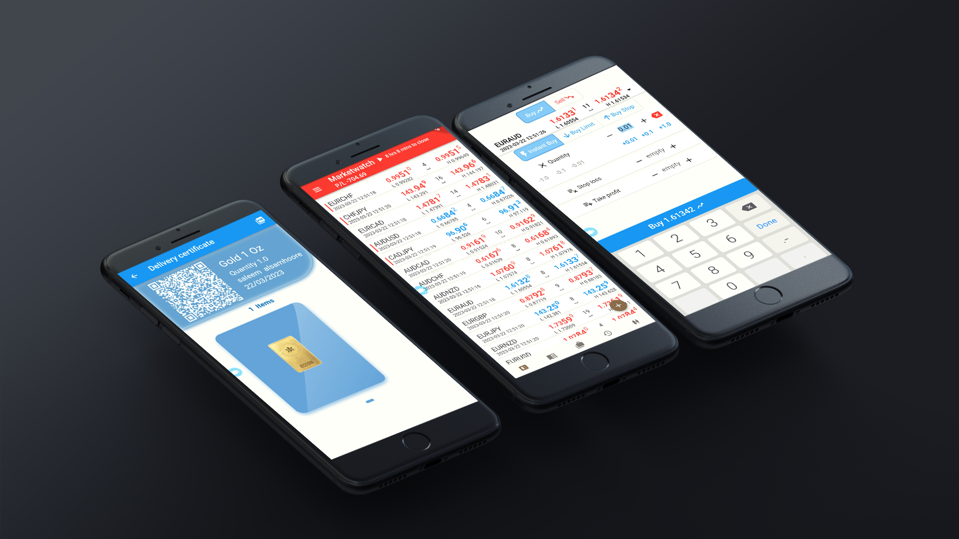 (Physical currencies and commodities) Through our technology we are able to provide a new trading method to allow clients to trade with physical currencies (EURUSD, USDCHF, USDCAD, AUDUSD, USDJPY, GBPUSD, etc.) and commodities (gold, silver, platinum, palladium, etc.). With our ability to integrate brokers with physical deliveries provider through our fix protocol, clients are able to build their portfolio with zero risk as per the full- settlement concept since clients receive their physical items upon their request, keeping note that there is no liquidation level for this type of account. Flexibility of our trading solutions platforms can help the end users to buy and sell the items based on its full value (full settlements).